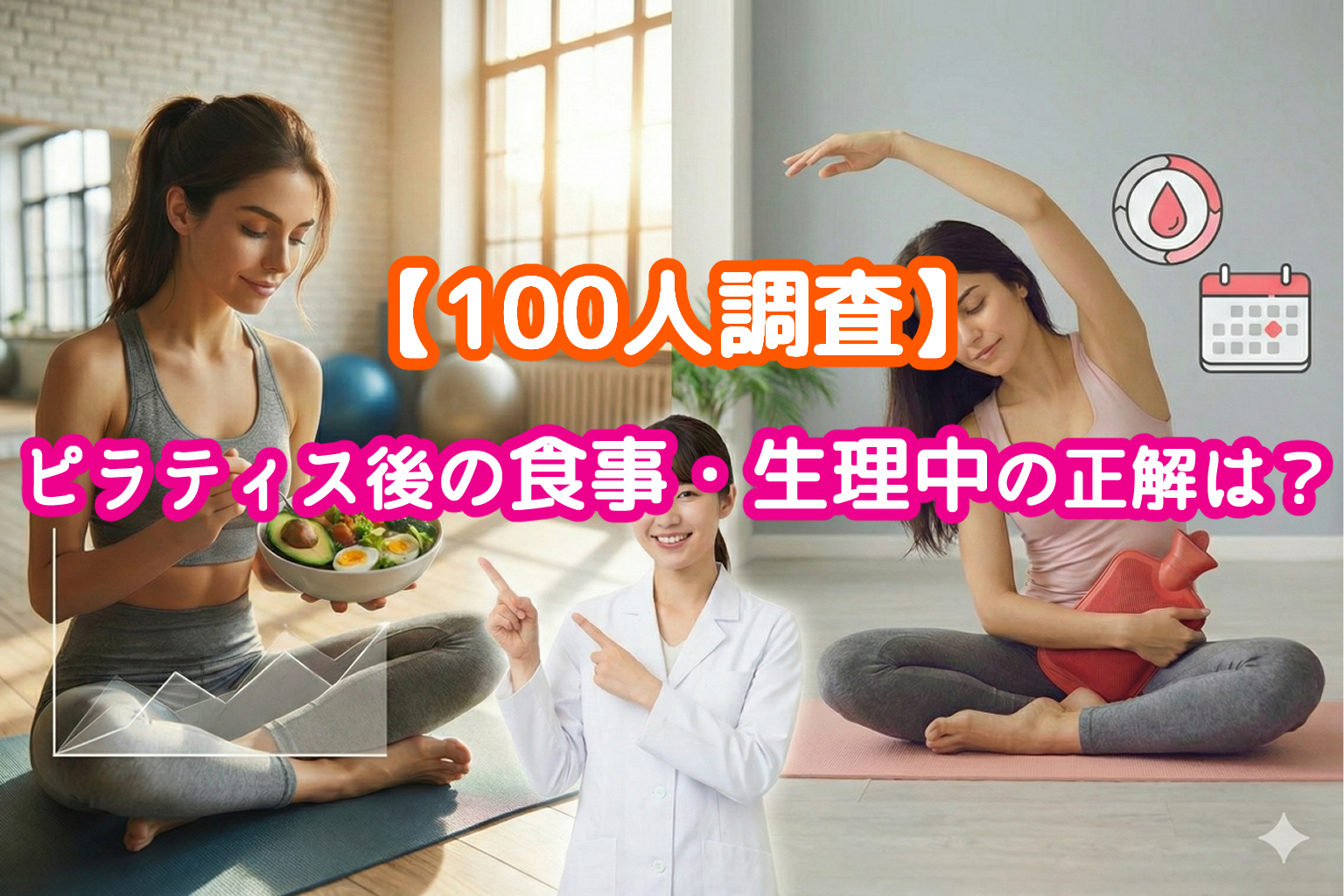 ネット上には教科書通りの答えはありますが、実際に通っている人たちの「リアルな事情」まではなかなかわかりません。 そこで今回、ピラティス経験者約100名を対象に、「ピラティス後の食事」と「生理中の対応」について緊急アンケートを実施しました。