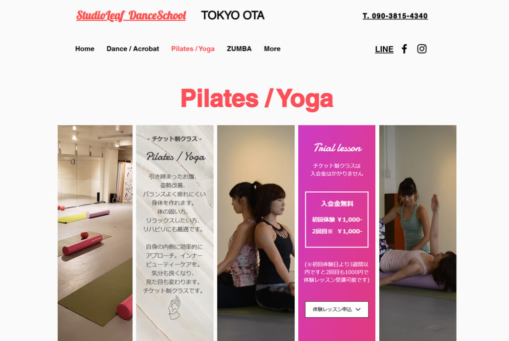 | 体験レッスン | マットグループ体験 1,000円(税込) マシングループ体験 3,000円(税込) プライベート体験 ~9,900円(税込) |